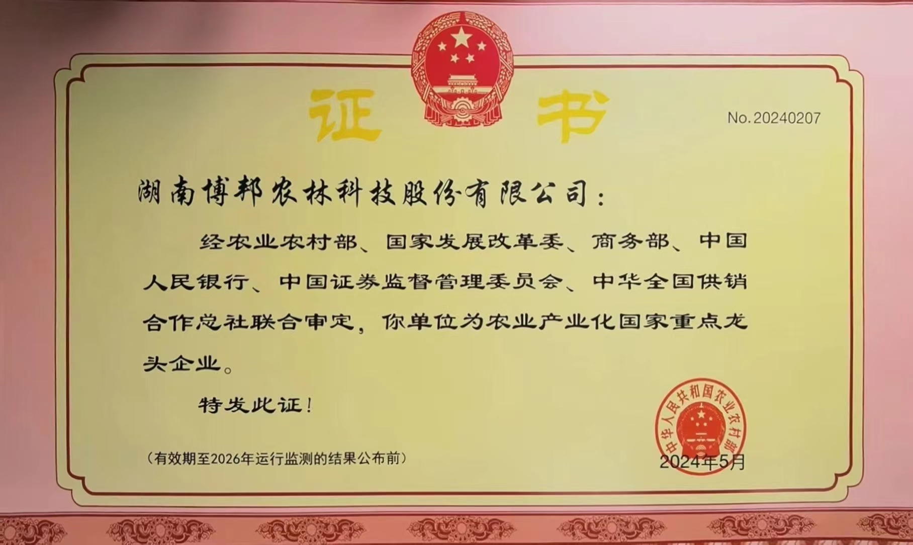 2024年5月,經(jīng)農(nóng)業(yè)農(nóng)村部、國家發(fā)展改革委、商務(wù)部、中國人民銀行、中國證券監(jiān)督管理委員會(huì)...